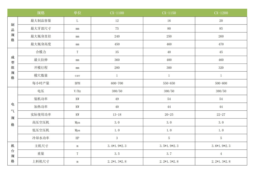 CX-1200一出一全自動吹瓶機(jī)主要用于5L-20L的食用油、花生油、大豆油、一次性桶裝水等吹瓶生產(chǎn)。