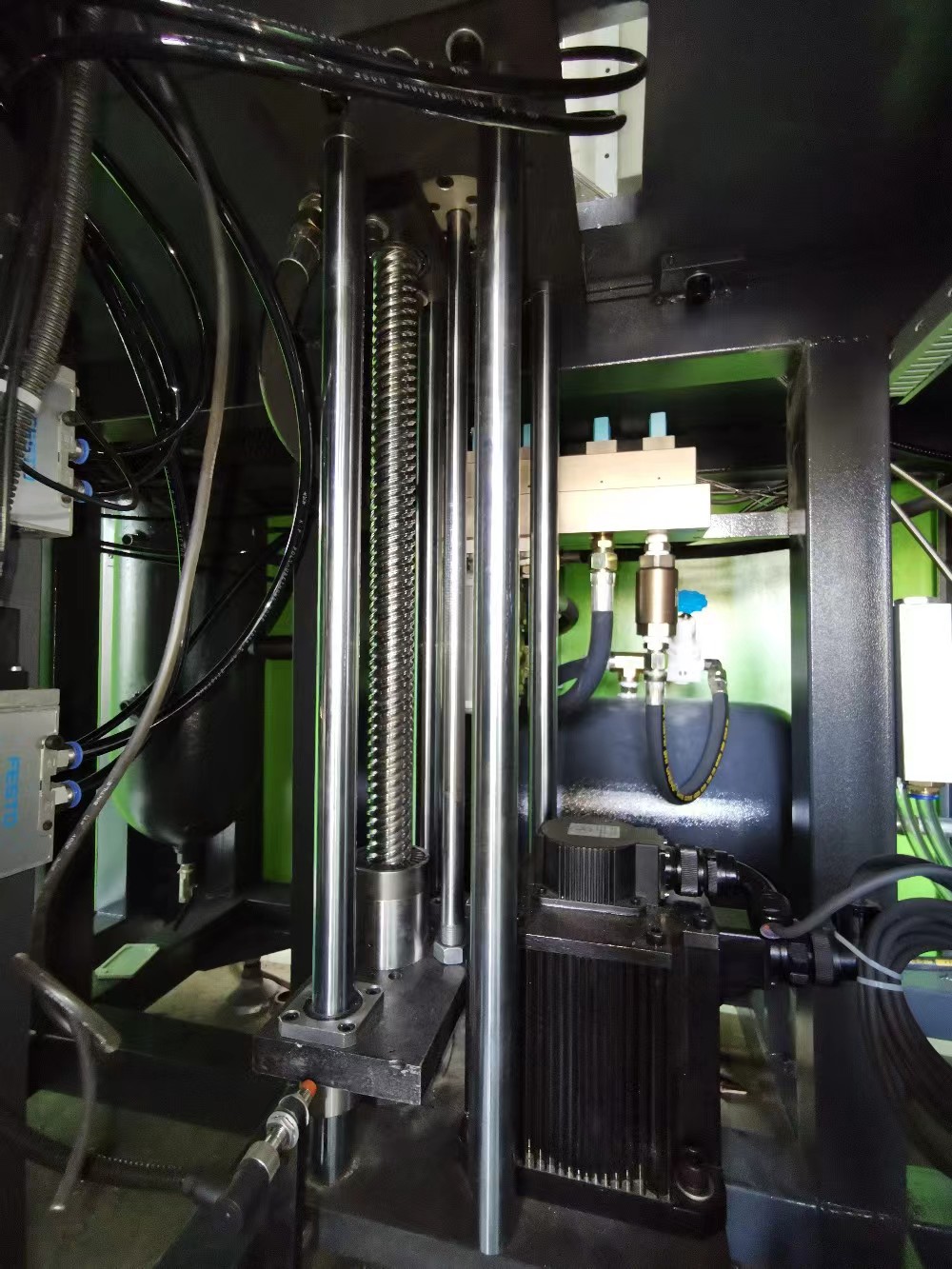 l合模采用伺服電機驅動,相對于氣動鎖模具有更快的速度及其穩(wěn)定性;